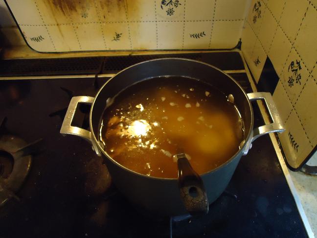 ②お湯を沸かしてマギーブイヨンを溶かし