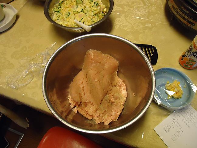 ⑥あら熱がとれたらこねておいた鶏ミンチにあわせ